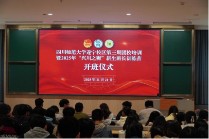 11月21日中午,四川师范大学遂宁校区第三期团校培训暨2025年“兴川之狮”新生班长训练营开班仪式在行远楼125室顺利举行。校区学生事务部负责人秦绍林、校区团委负责人康雅洁、国防教育教导队指导教师胡洋洋、至善书院分团委书记何源、行远书院分团委书记余江林等相关指导教师和各学员代表参加了此次仪式。本次仪式由校区团委学生副书记方贵伟主持。