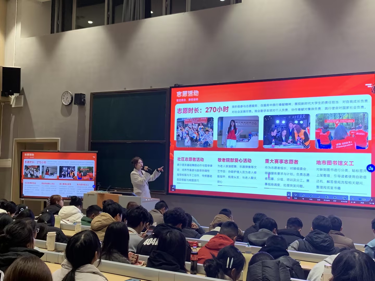 分享中,周蕊吉展示了条理清晰的课堂笔记,拆解了 “深耕教材 + AI 赋能 + 高效复盘” 的学习方法,强调理解性记忆与实用笔记的重要性;实践层面,周蕊吉同学逐一展示个人核心荣誉与志愿履历,以扎实实绩诠释青年担当:曾斩获全国职业院校技能大赛酒店服务项目一等奖、遂潼旅游饭店从业人员服务技能大赛一等奖等多项重量级赛事奖项,以专业深耕锤炼过硬本领;在校期间主动履职尽责,兼任班级宣传委员、校礼仪队干事,在岗位实践中锤炼综合能力、提升综合素养;积极投身志愿服务,先后参与社区便民服务、敬老院关爱帮扶、各类赛事保障等公益活动,累计志愿时长超270小时,以实际行动践行青年使命、传递温暖力量。生活维度,她分享“兴趣赋能+友善睦邻”的寝室相处法宝,日常深耕绘画、坚持运动,以兴趣丰富课余生活、舒缓学业压力,同时秉持真诚友善之心维系人际联结,用心营造和谐氛围,鼓励同学们在专注学业之余兼顾生活质感,实现全面发展、多维成长。