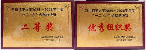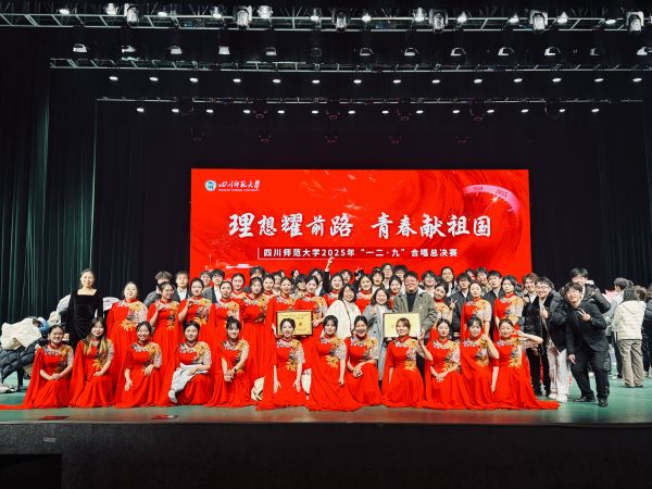 2025年12月8日晚,“理想耀前路·青春献祖国”四川师范大学2025年“一二·九”合唱总决赛在成龙校区龙湖剧场隆重举行。经过激烈复赛角逐晋级决赛的四川师范大学遂宁校区合唱团,凭借由校区音乐学系主任、国务院政府特殊津贴专家李德隆教授原创的曲目《中国,放飞你的辉煌》,以饱含深情的演绎与精湛的艺术表现荣获总决赛第二名,摘得二等奖桂冠。同时,遂宁校区因组织工作扎实有力,荣获“优秀组织奖”。