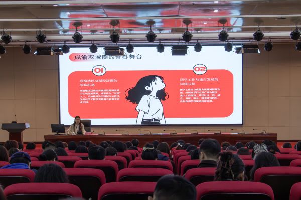 接着,成都市学生联合会驻会执行主席岳之杨围绕团学骨干责任担当与成长路径分享实践经验她从锚定青春航向、锻造硬核本领、升级团学引擎和无愧韶华出发,号召青年骨干聚焦主责主业,将个人成长融入学校发展与国家建设大局,在服务同学、奉献集体中锤炼自身能力,彰显新时代青年的责任与担当。
