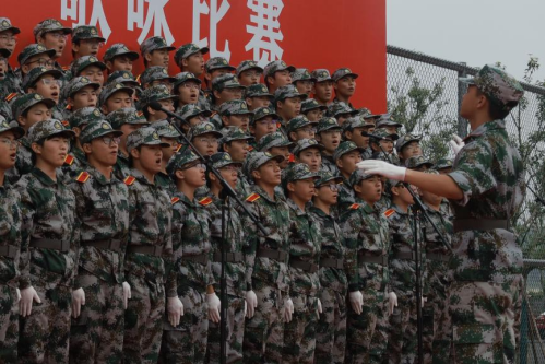 比赛以连队为单位,各连队迈着整齐划一的步伐依次登台,参训学生配合默契,每一个音符都饱含热情,每一句歌词都充满力量,嘹亮的歌声穿透晨光,在西苑运动场上空久久回荡。比赛过程中,主持人实时播报各连队得分,紧张的氛围与热烈的掌声交织,让整场比赛更具看点。
