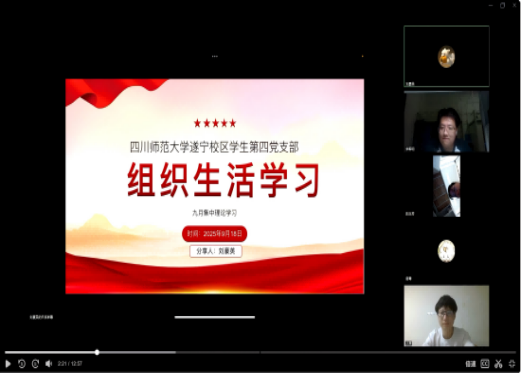 为深入贯彻学校关于2025年9月组织生活学习安排的通知精神,持续深入学习贯彻习近平新时代中国特色社会主义思想,巩固拓展学习教育成果,进一步落实组织生活制度,遂宁校区各学生党支部于近期分别开展组织生活学习,集体学习包括习近平总书记在纪念中国人民抗日战争暨世界反法西斯战争胜利80周年大会上的重要讲话、习近平总书记就作风建设作出的“锲而不舍落实中央八项规定精神 推进作风建设常态化长效化”重要指示以及中共中央印发的《中国共产党党徽党旗条例》等。