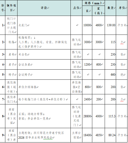 一、项目名称:四川师范大学遂宁校区2025年“秋季双选会”布展服务项目