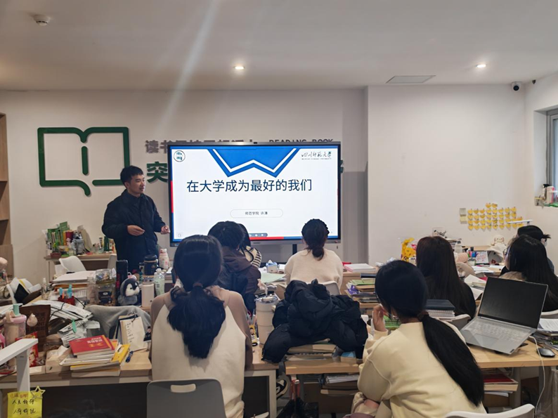 为助力同学们明晰成长方向,锚定青春使命,规划充实且有意义的大学生活,2025年10月23日下午,四川师范大学遂宁校区学生社区自我管理委员会于菊苑三栋学生社区自习室组织开展第十三期“寓见”辅导员社区面对面活动。本期的主讲人是遂宁校区桃李书院辅导员、校区学生党务工作站指导教师许涛老师,主题为“谱写青春篇章:从个人成长到担当使命”。
