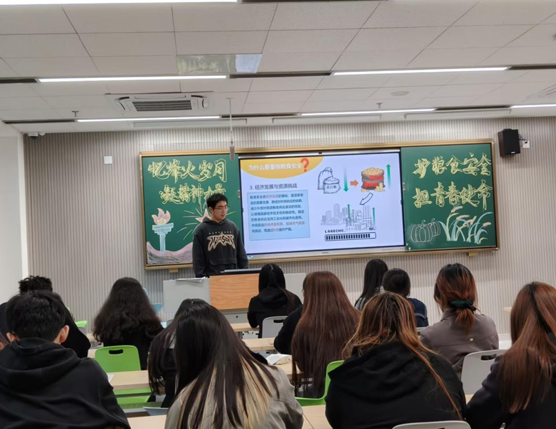 为深入学习贯彻国家粮食安全战略、弘扬校园节粮风尚,10月22日下午,24级教育技术学3班团支部在至善楼209教室举办“忆烽火岁月凝精神力量,护粮食安全担青春使命”主题团课。