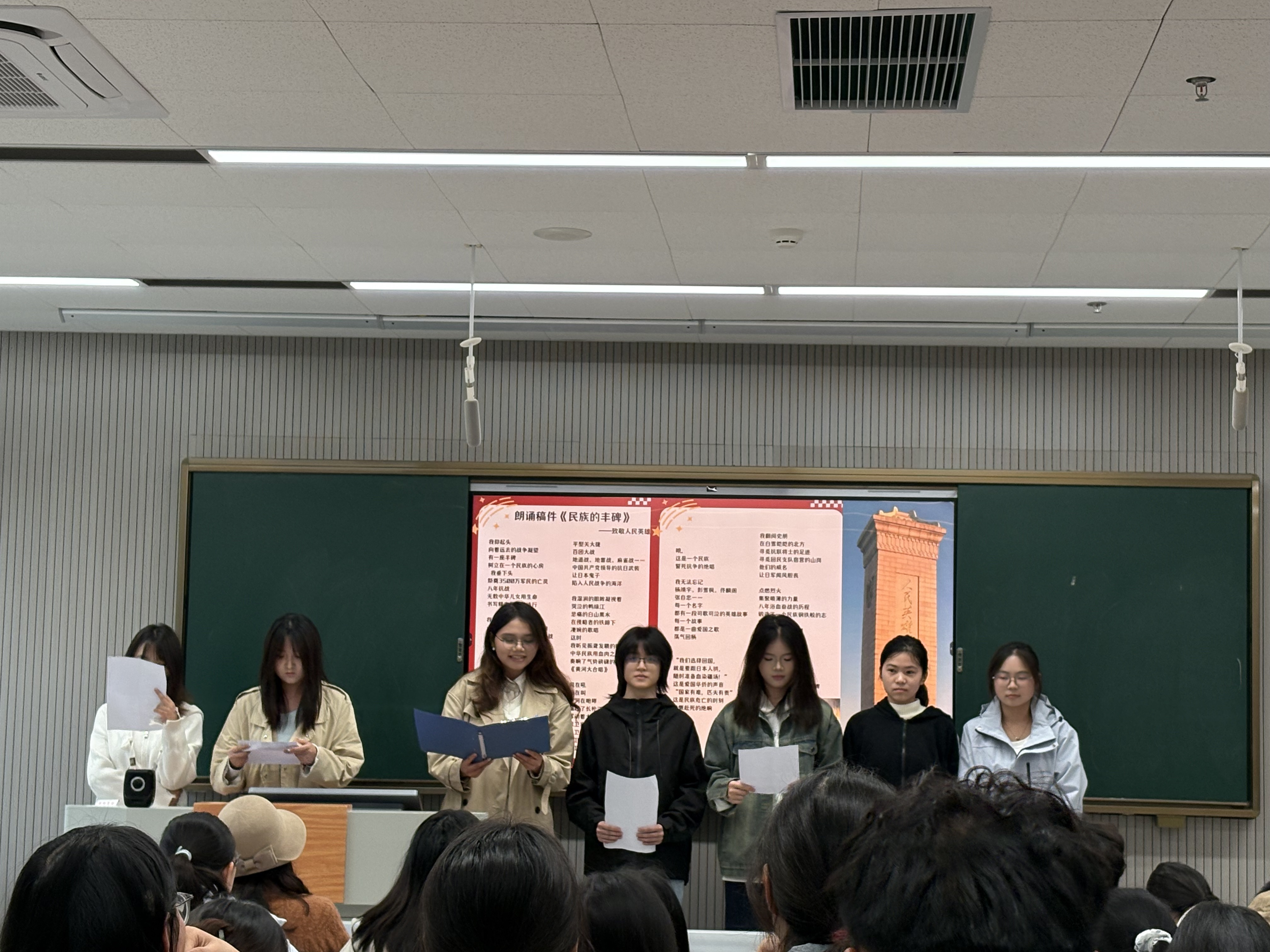 活动伊始,朗诵环节便点燃现场氛围。7名同学组成的朗诵小队手持文稿,以铿锵有力的语调诵读。她们的声音时而低沉,描摹革命年代战士们“一把青稞分着吃”的艰苦场景;时而激昂,展现根据地军民“自力更生种粮忙”的奋斗姿态,字句间满是对历史的敬畏,让在场同学仿佛穿越时空,真切感受到粮食在烽火岁月里的珍贵重量。