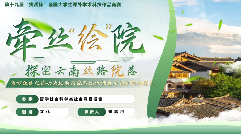 遂宁校区至善书院文化产业管理专业2023级学生秦森莉作为团队成员之一参与的《牵“丝”绘院:廊道遗产视域下南方丝绸之路枢纽院落“四丝”保护体系建构》项目在国赛中荣获一等奖。该项目聚焦南方丝绸之路重要驿站——云南通海县的明清院落保护,通过对当地343座院落开展系统调研,创新构建以多民族独特工艺、仪式空间完整性与内部构件损毁率为核心的“丝级评估量表”,并据此建立“四丝分级保护”机制,将院落划分为核心文物、活态民居、租户主导与濒危闲置四类,分别对应金、银、铜、素四级保护策略,为西南多民族地区古院落保护探索出具有推广价值的“通海方案”。