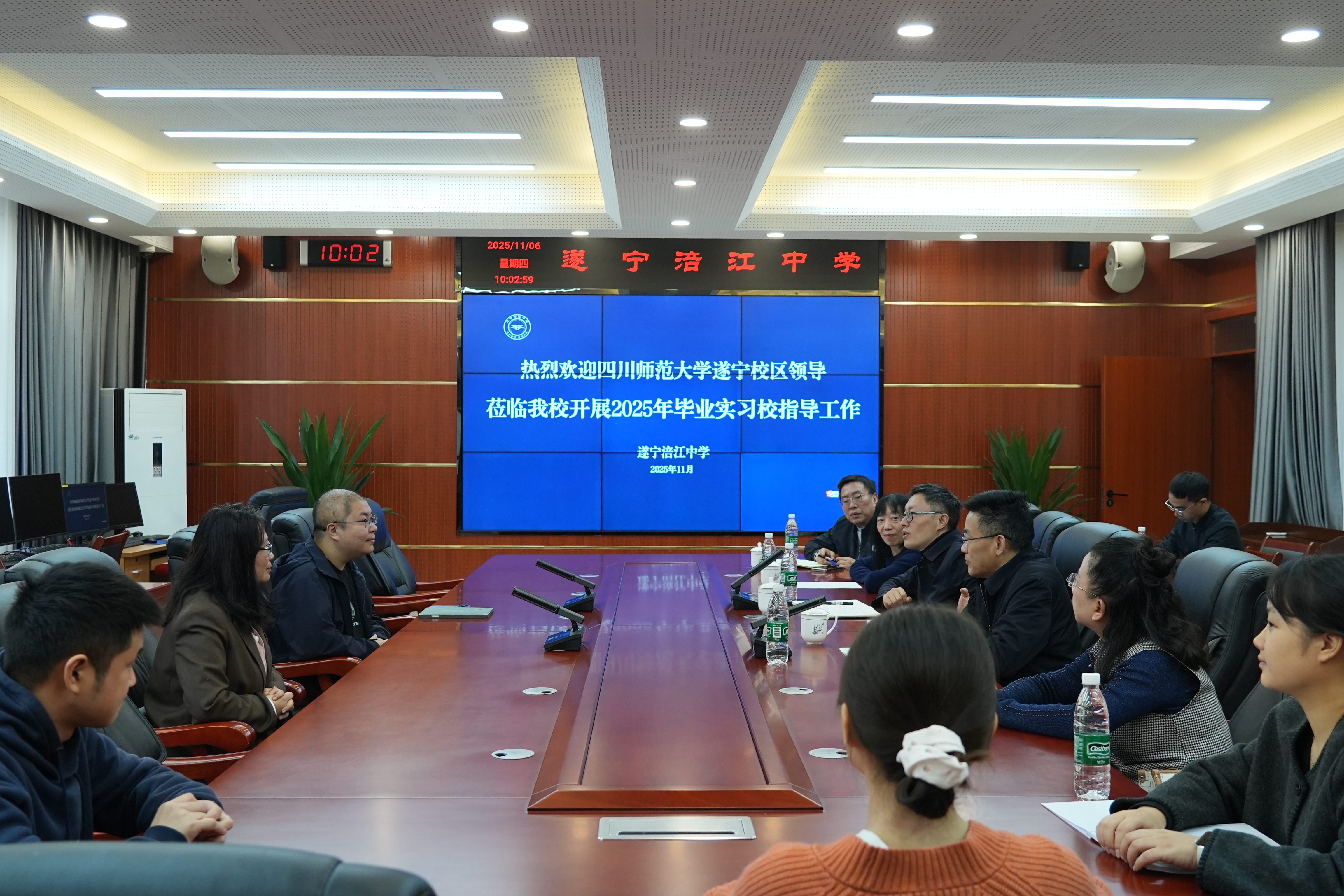 为深入了解实习生工作情况,加强学校与实习基地交流与合作,进一步提升实践教学质量,11月6日上午,四川师范大学副校长、遂宁校区党委书记、综管委主任何诣然带队先后前往遂宁涪江中学、中国移动通信集团四川有限公司船山分公司、遂宁市河东实验小学校,实地检查校区2026届毕业集中实习工作。遂宁校区综管委常务副主任李兴聪,校区教学事务部负责人丁明鲜及相关专业系主任和带队教师陪同检查。