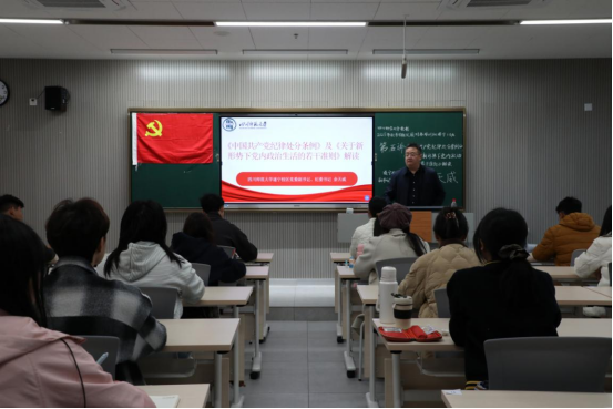 11月9日上午,遂宁校区党委副书记、纪委书记余天威老师对《中国共产党纪律处分条例》及《关于新形势下党内政治生活的若干准则》进行了深入解读,强化了学员们的纪律观念;马克思主义学院教授崔青青老师则围绕《中国共产党章程》展开讲解,帮助学员们更好地掌握党的基本知识。