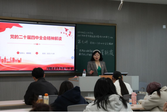 本次培训课程内容丰富、形式多样,涵盖了党的理论知识、党史教育、党内法规以及时政热点等多个方面。11月8日上午,培训以“习近平新时代中国特色社会主义思想”主题拉开序幕,由遂宁校区党委常务副书记饶显周老师主讲,帮助学员们深入理解党的创新理论。