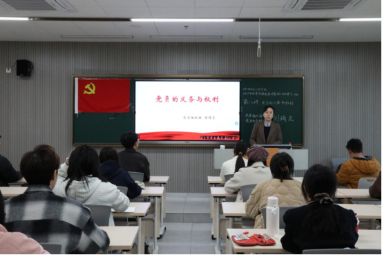 此外,学校党委组织部党员教育科科长刘琦灵老师还就“党员的义务与权利”进行了专题辅导,明确了党员的责任与使命。培训还设置了优秀党员进课堂和讨论交流环节,通过身边榜样的示范引领和学员间的互动交流,进一步激发了大家的学习热情和积极性。
