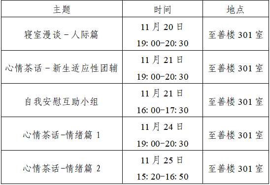 1.团体心理活动不收取任何费用,活动期间将为参与学生提供必要的活动材料。