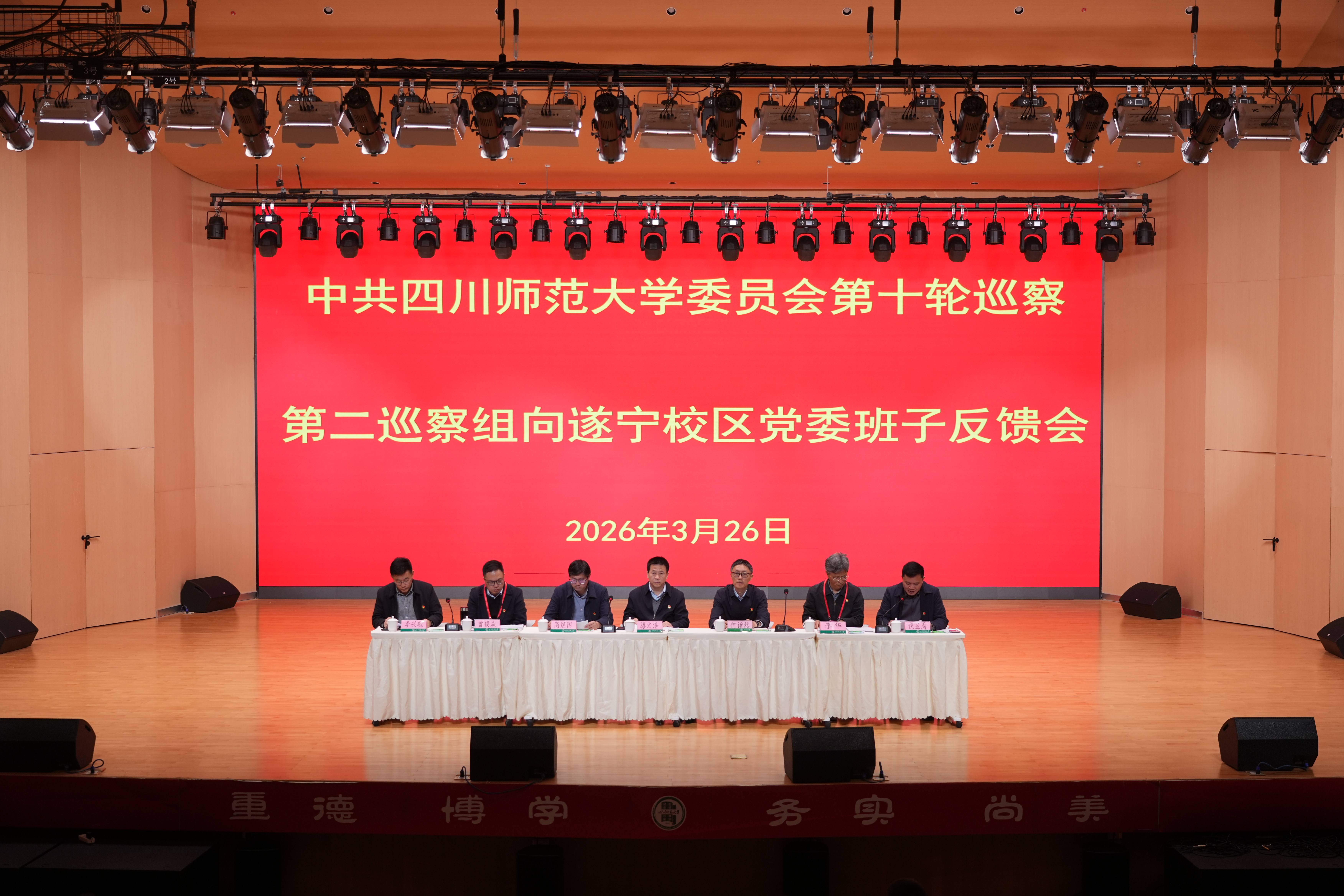 根据学校党委统一部署,2026年3月26日上午,中共四川师范大学委员会第十轮巡察第二巡察组向遂宁校区党委反馈巡察情况会在遂宁校区召开。学校党委副书记、纪委书记、巡察工作领导小组常务副组长滕文浩,学校党委常委、副校长、遂宁校区党委书记、综管委主任何诣然,学校党委常委、组织部部长、巡察工作领导小组成员高继国出席会议。