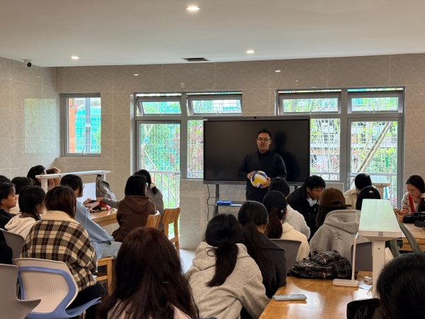 苏文杰同学热爱排球运动,具备扎实的技术功底和丰富的实战经验。活动中,他围绕排球接发球的关键技术展开讲解,重点介绍了正面垫球的击球部位、发力技巧及身体协调性,详细演示了正面双手接球的规范动作与练习方法。同时,他还系统讲解了垫步、跨步、并步、交叉步四种基本步伐,帮助同学们提升接发球的稳定性和成功率。